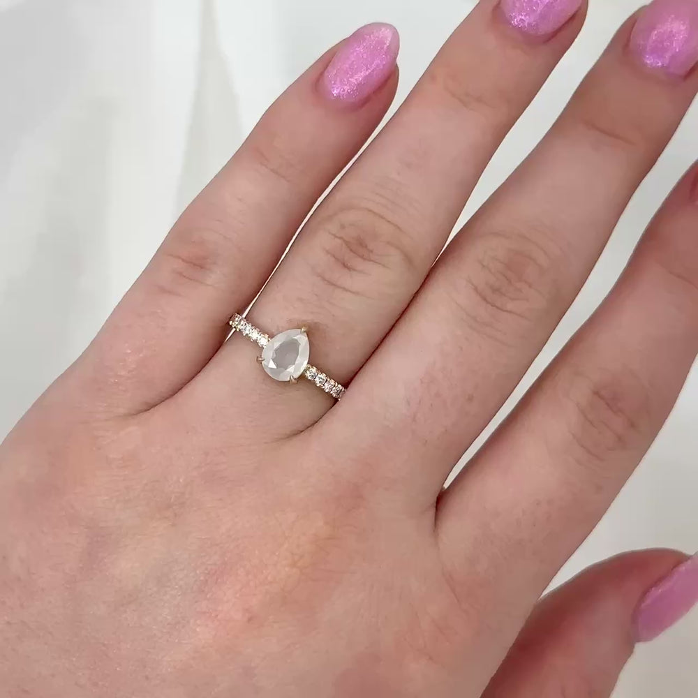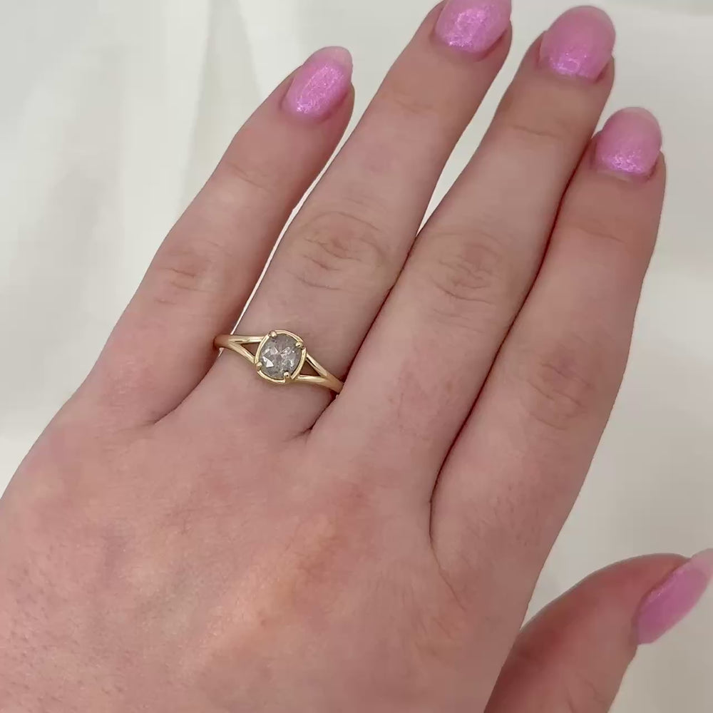 1.39ct Rose Cut Icy Grey Hexagon Diamond Ring