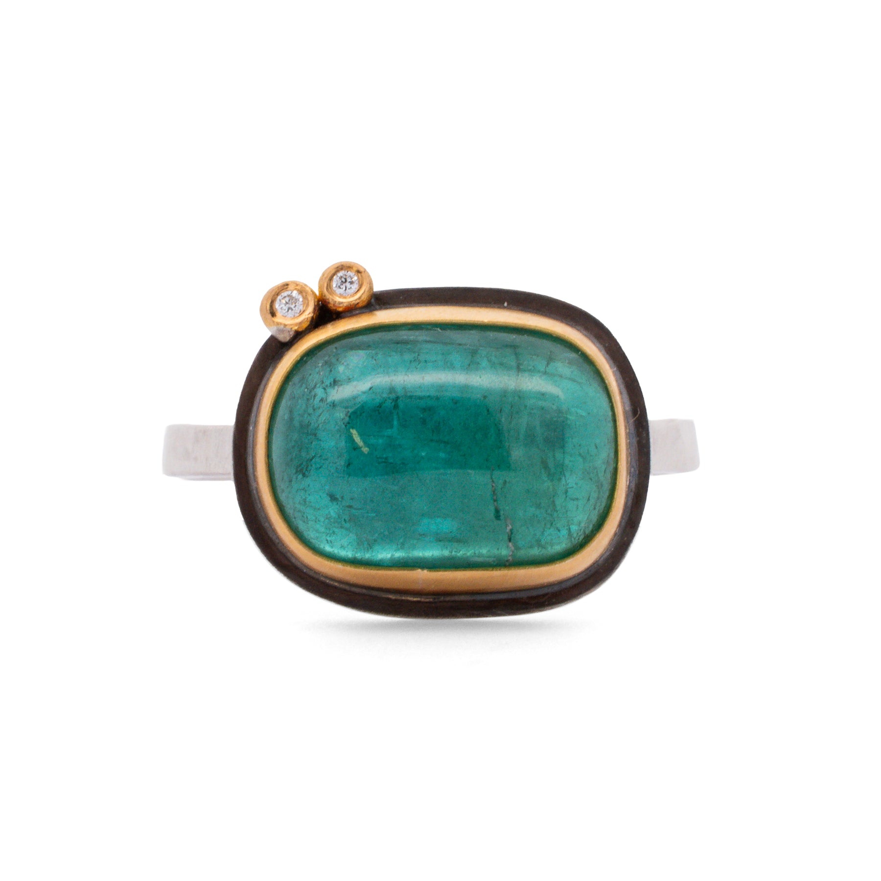 - Set in a 22K yellow gold bezel with sterling silver platform & band