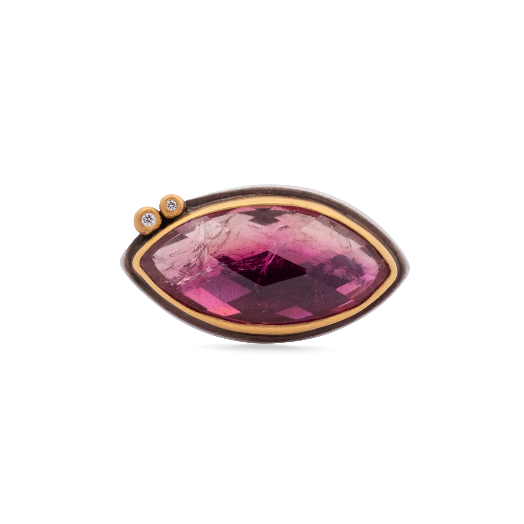 - Set in a 22K yellow gold bezel with sterling silver platform & band