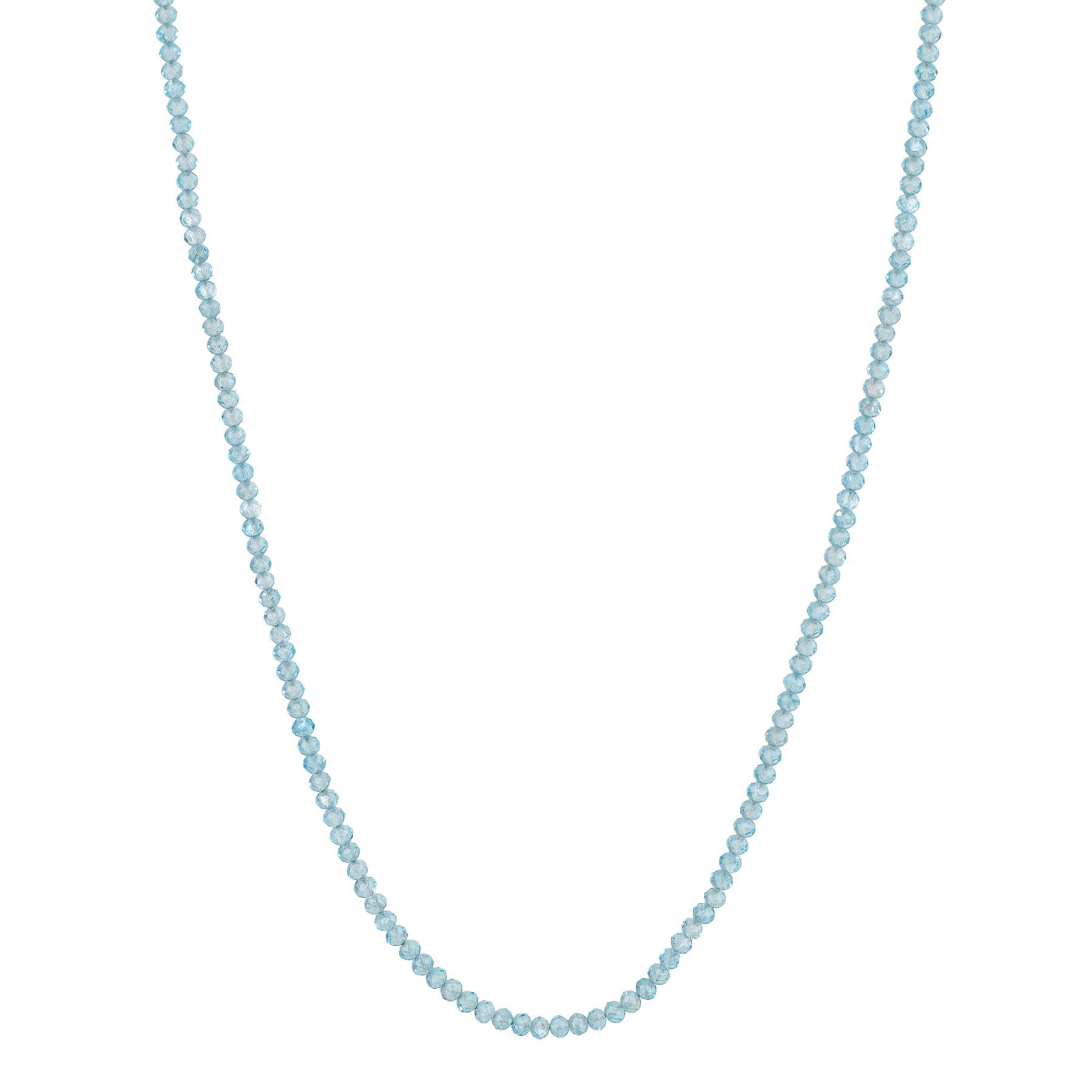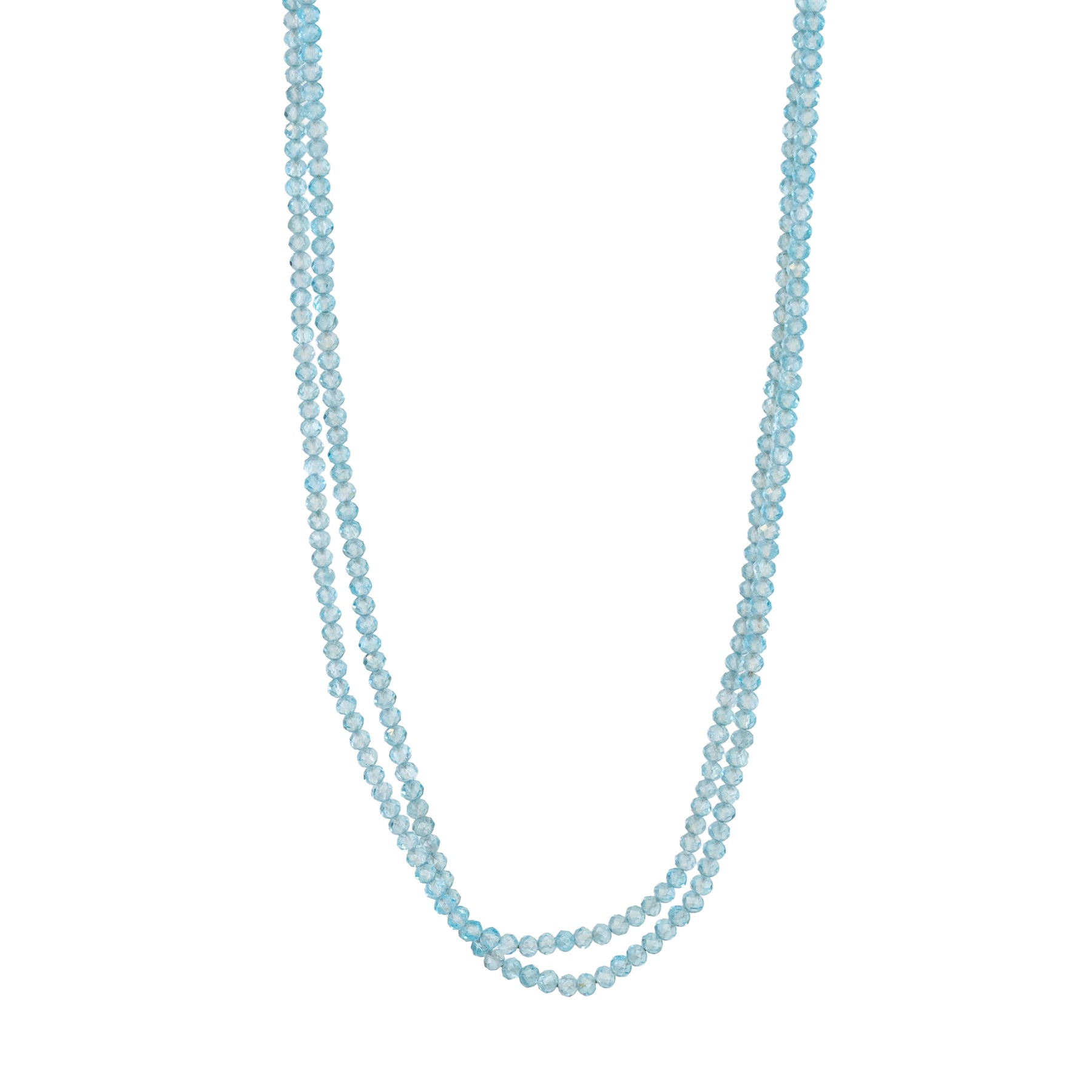 Faceted apatite beaded necklace strung on hand-knotted silk cord with a gold s-clasp. This necklace can be worn long, or doubled up to make a short necklace.