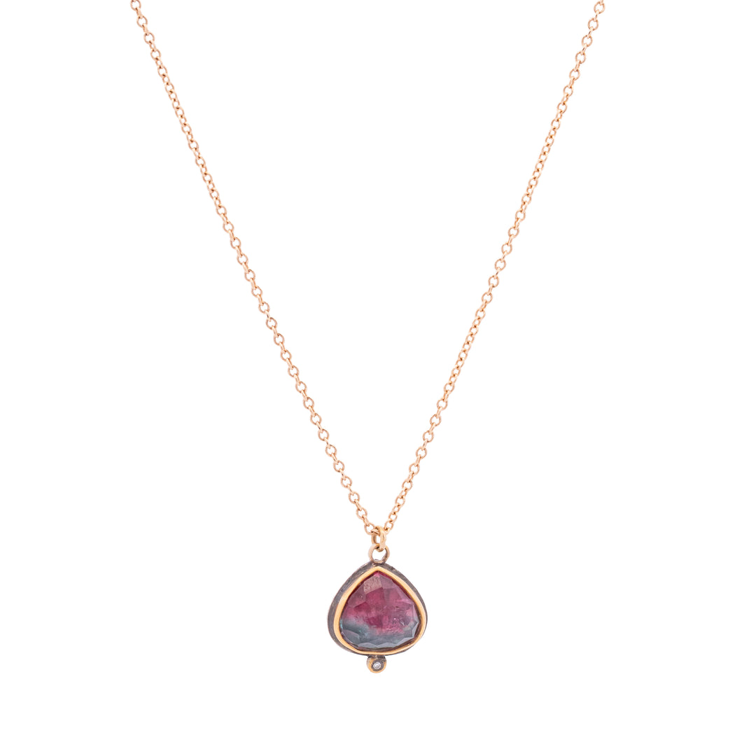 Teardrop Rose Cut Watermelon Tourmaline Necklace
