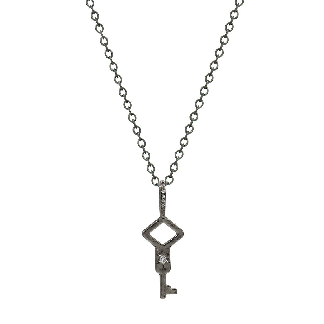 Antiqued Silver Diamond Key Pendant