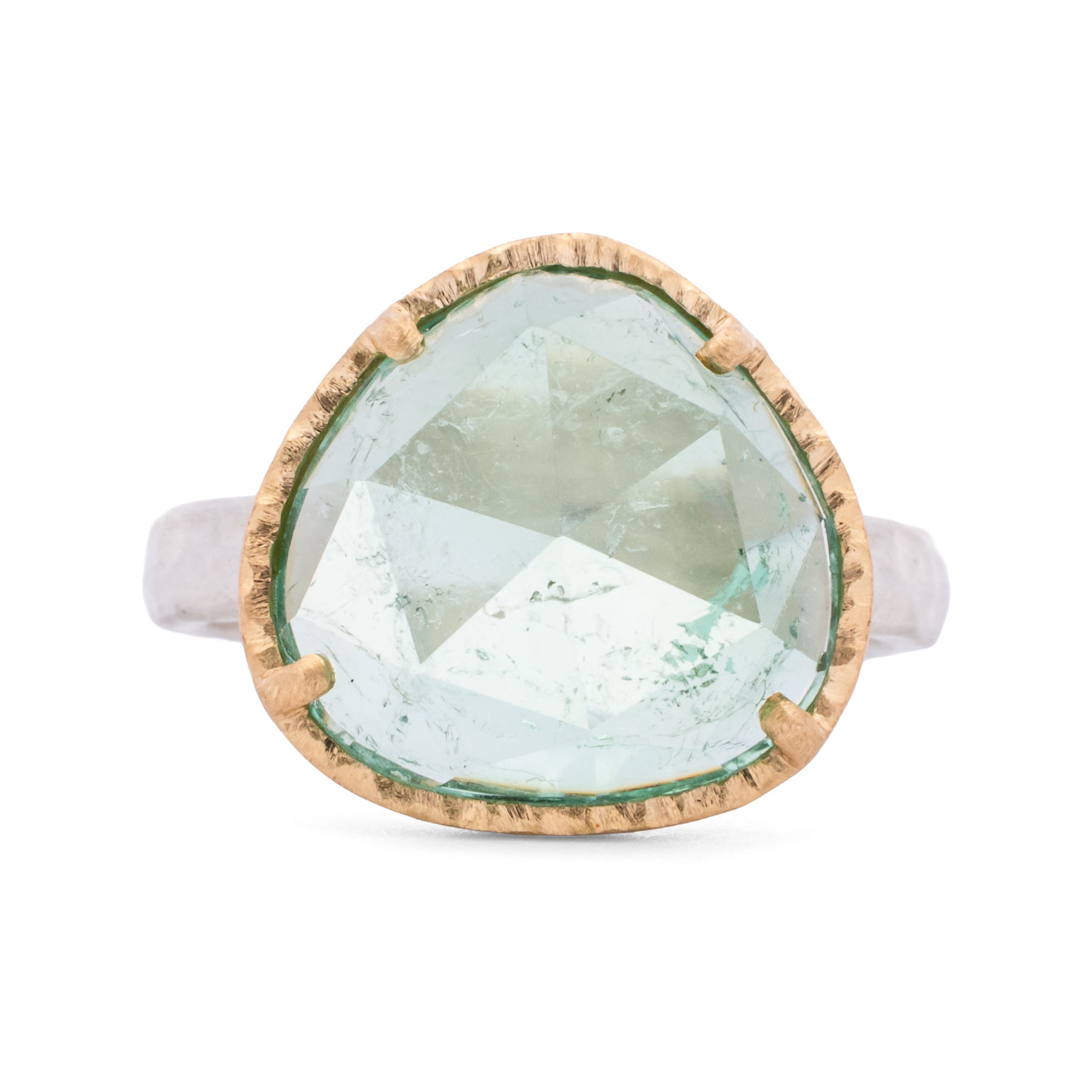 Asymmetrical Rose Cut Green Tourmaline Ring