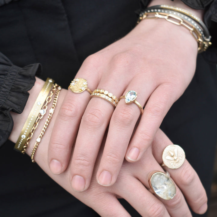 Everything in our gallery has been handmade and should be treated with care. Like clothing, jewelry is not impermeable to general wear and tear or accidental damage. Please remove all jewelry when showering, sleeping, and exercising to extend the longevity of your new piece. When given mindful wear, cleaning, and maintenance, many pieces of jewelry can last for generations.
