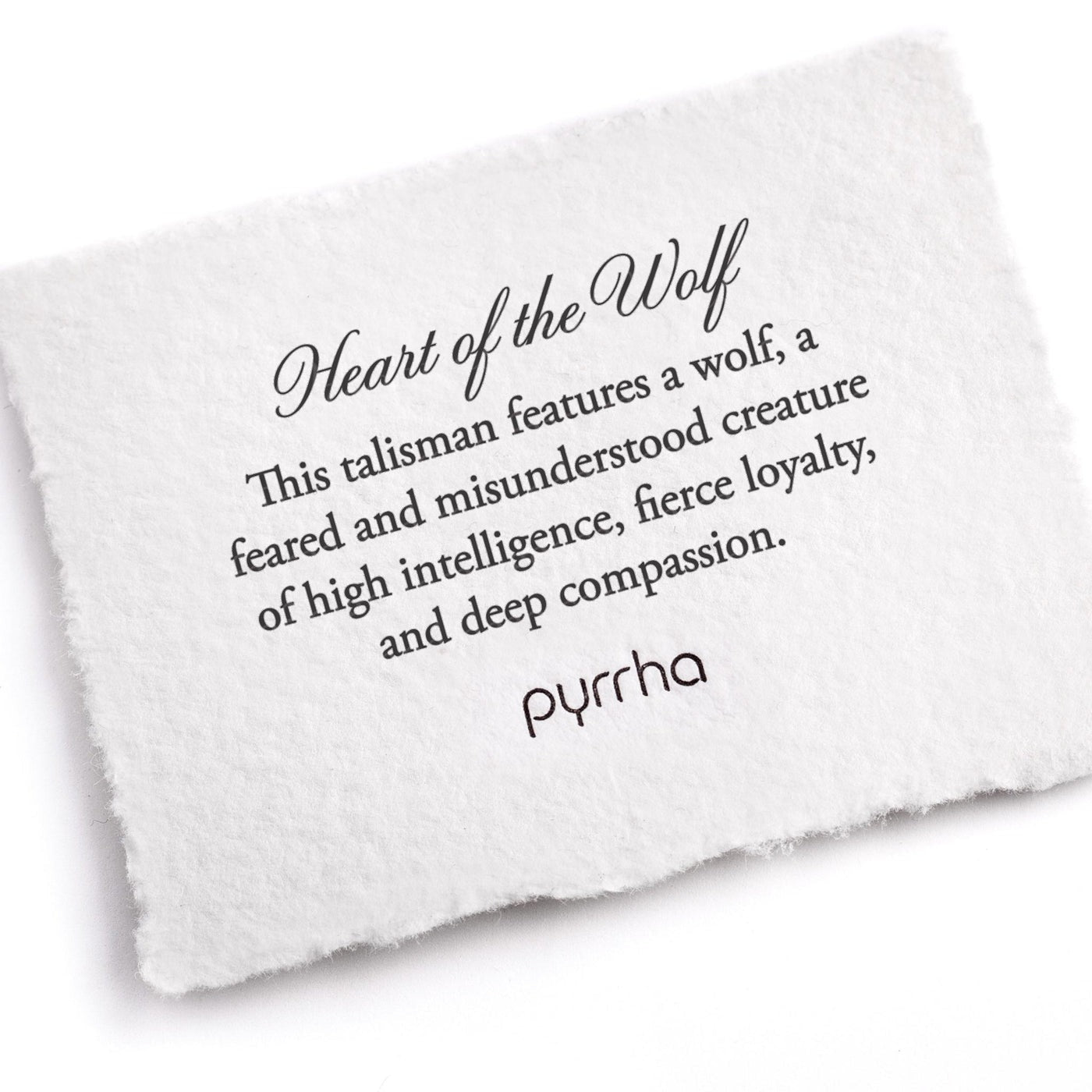 This talisman features a wolf, a feared and misunderstood creature of high intelligence, fierce loyalty, and deep compassion.