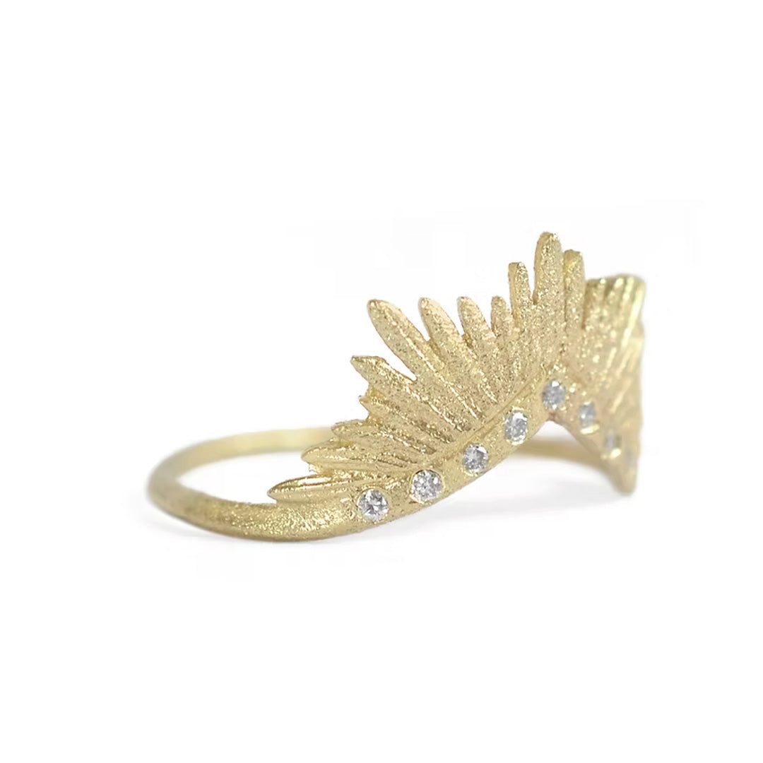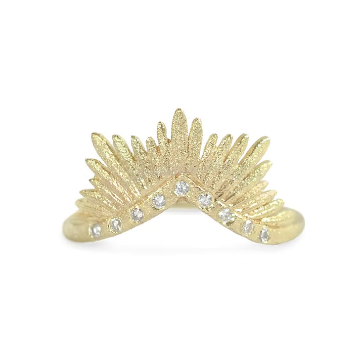 This Acanthus apex ring features a large bursting light pattern, accented with diamonds and signature stardust texture.