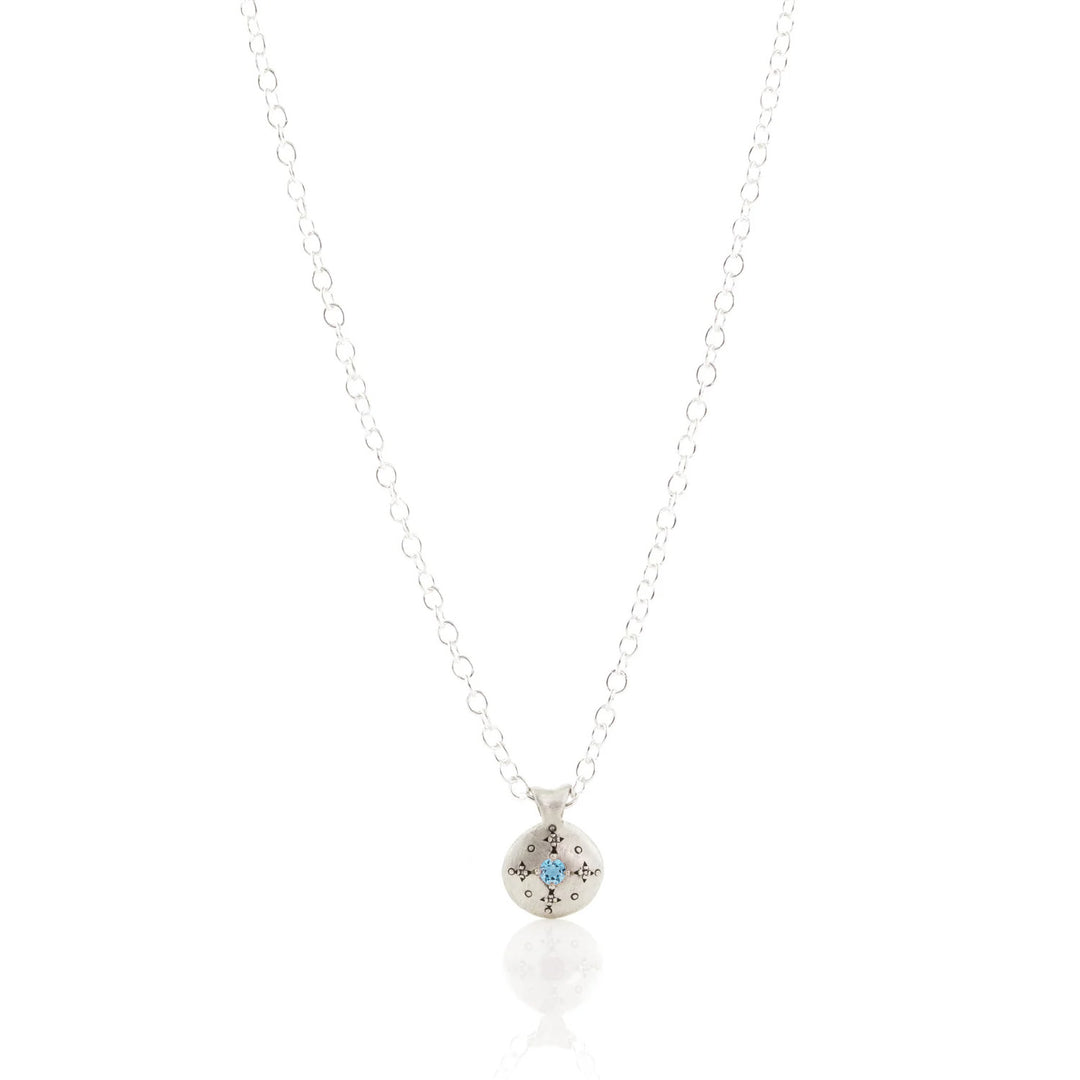 A small and delicate sterling silver Adel Chefridi pendant hand set with an aquamarine and accented with star beading.