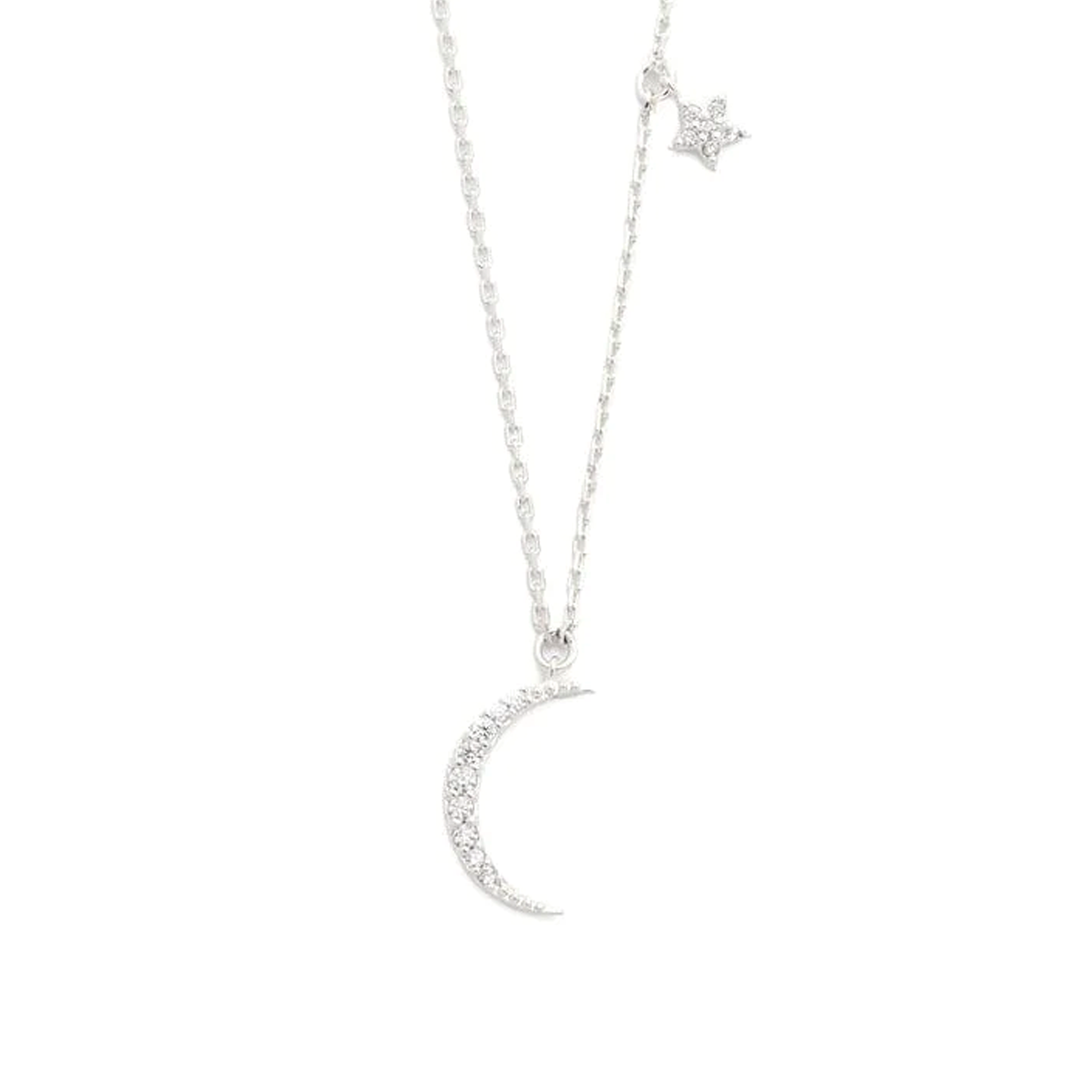Silver-plated cubic zirconia crescent moon and star necklace.