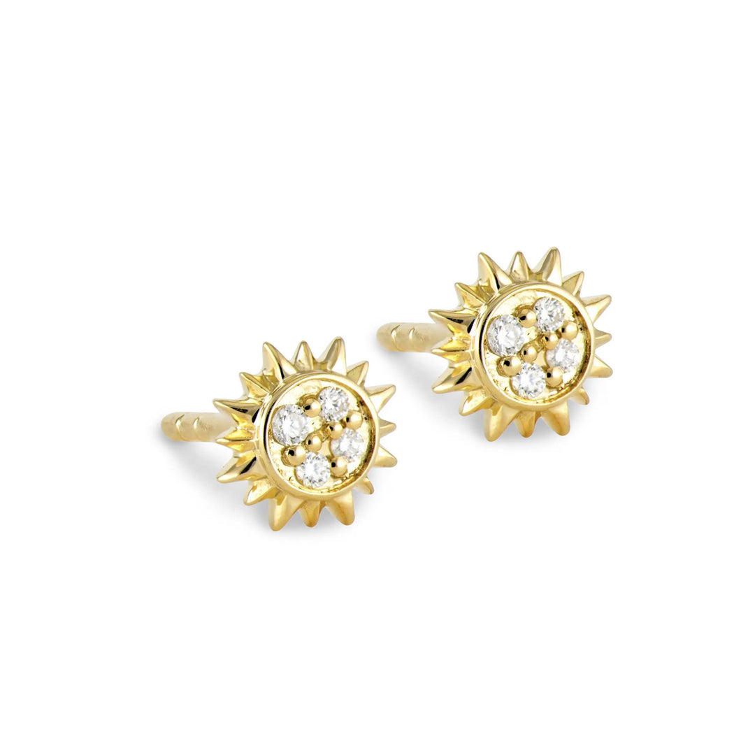 The Pave Diamond Sun Stud is made with 14k yellow gold and sparkling pave diamonds. These stunning earrings looks beautiful worn alone or in a Three Stories earring stack.