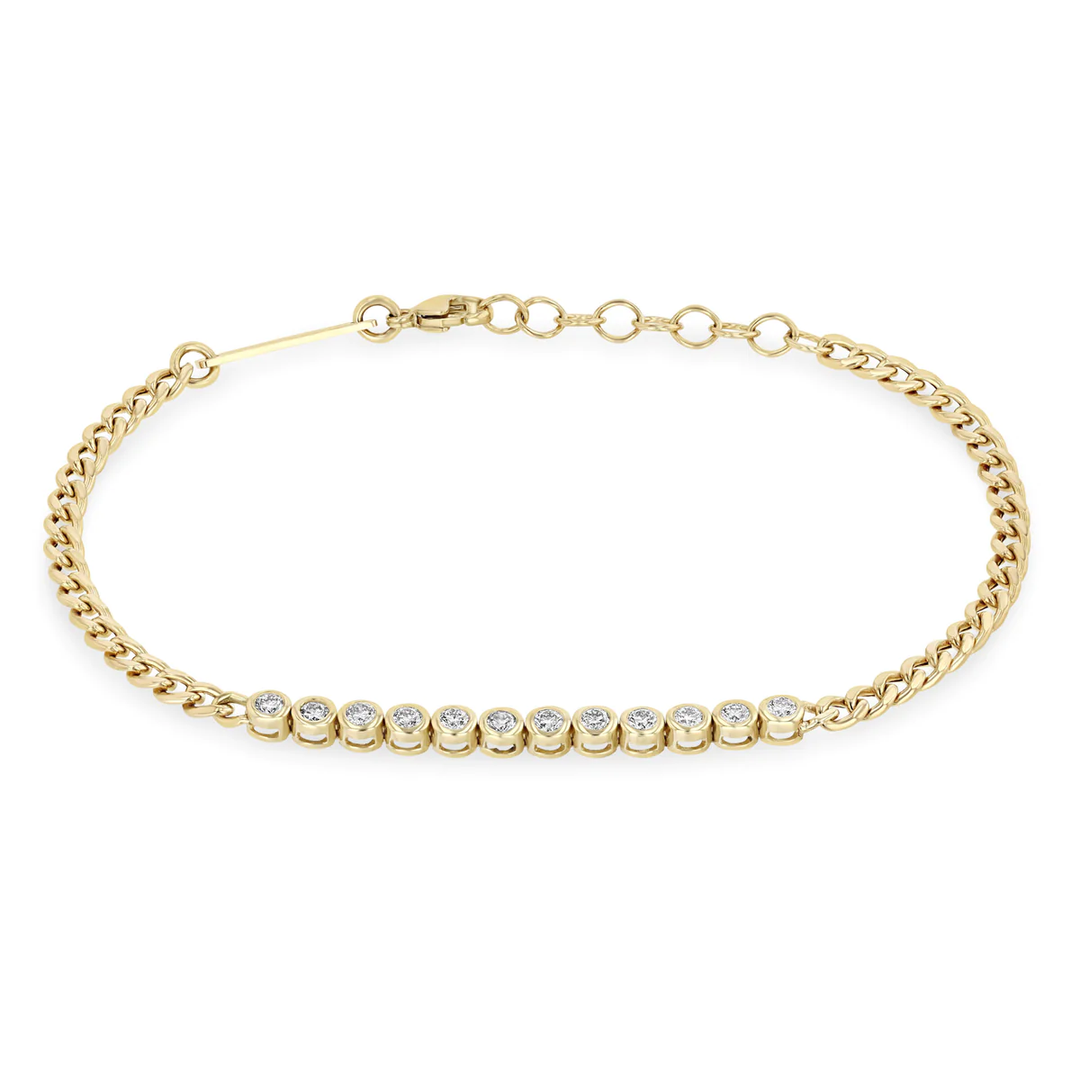 Bezel Set Diamond Tennis Style Curb Chain Bracelet